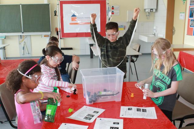 Als es an diesem Morgen hieß "heute geht es im Sachunterricht um Experimente und dazu gehen wir in die Forscherstation", war die Freude der Kinder groß. "Jaaa", freut sich Lukas und schnappt sich augenblicklich eine der Schutzbrillen.